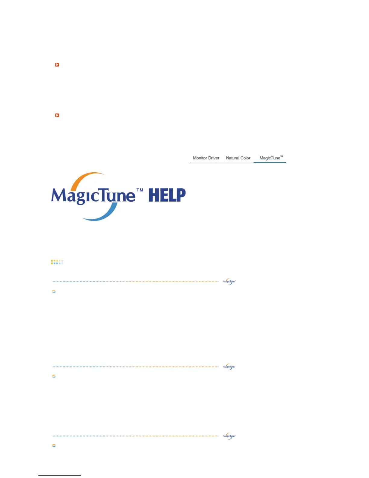 in correctly setting the controls of the monitor. MagicTune™ is a software utility that guides you through
