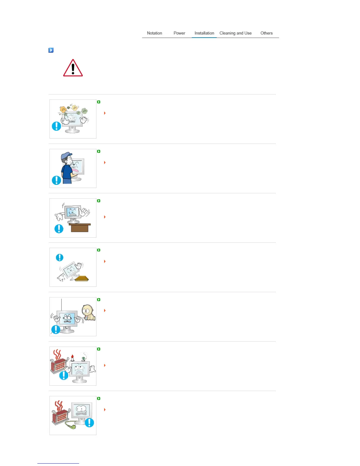 Be sure to conta ct an authorized Service Center, when installing your monitor in a