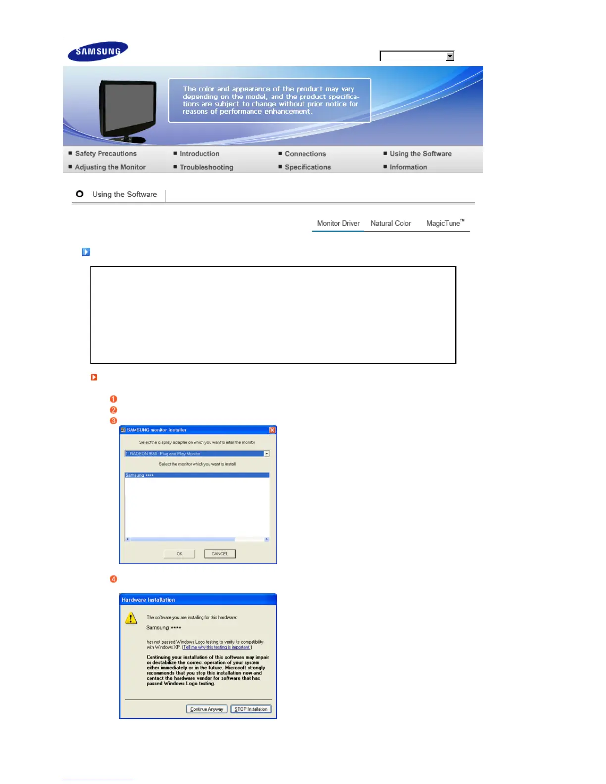 monitor. Driver installation is slightly different from one operating system to another. Follow the