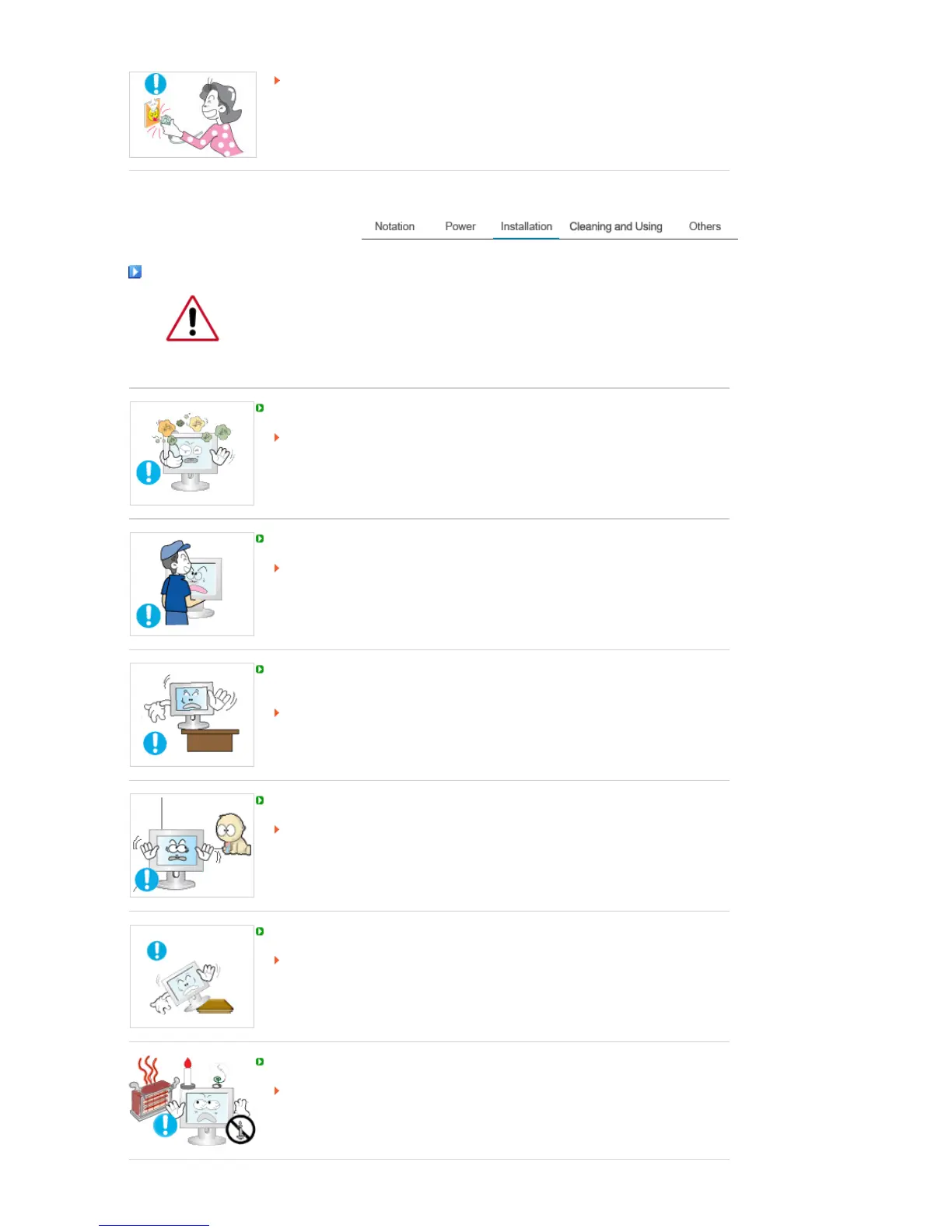 Be sure to contact an authorized Service Center, when installing your monitor in a