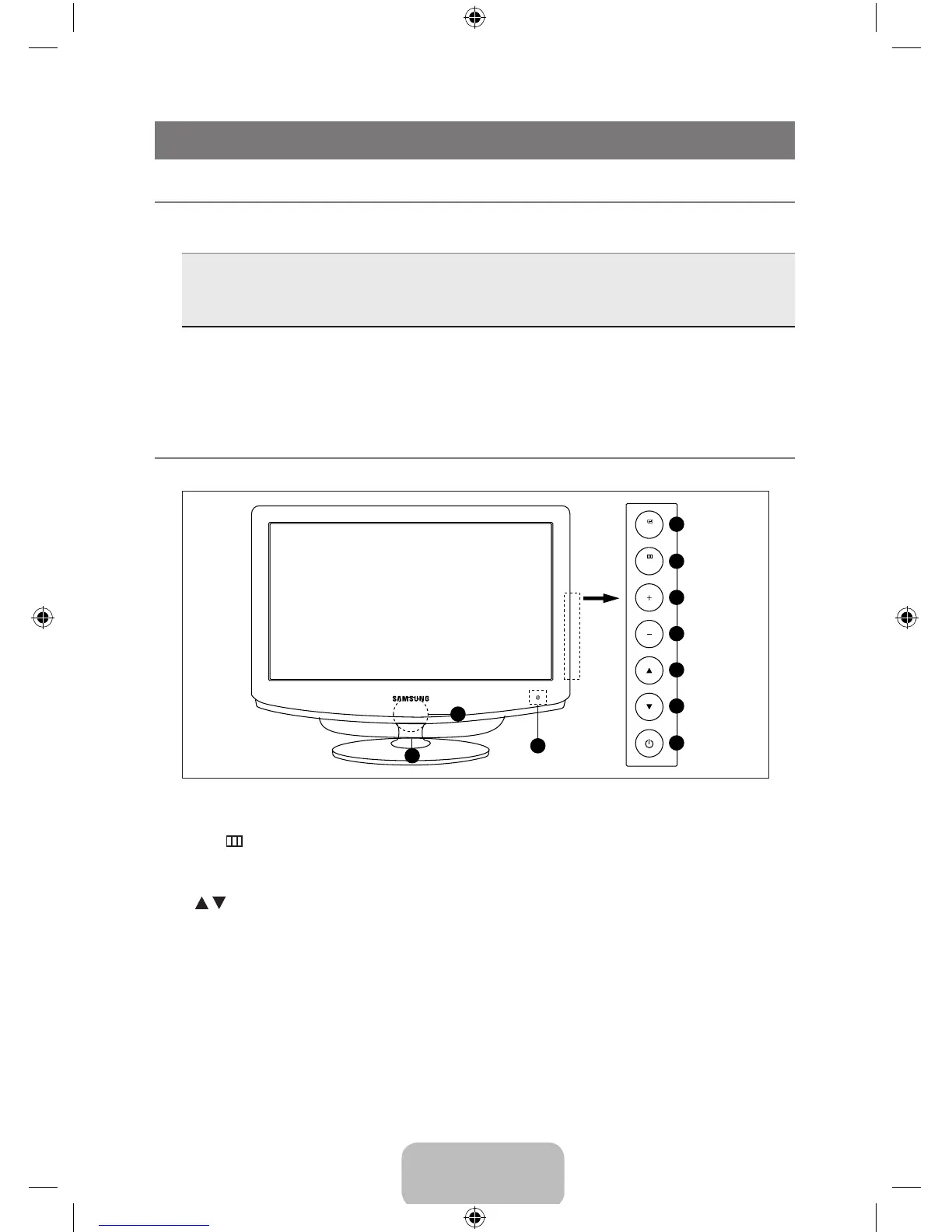 , : Moves from one menu item to another vertically or adjusts selected menu values. In TV