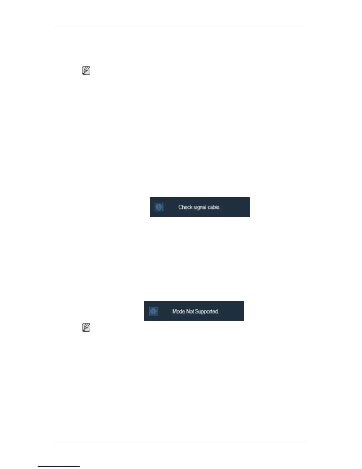 The figure shown below ("Check Signal Cable") appears on a black background when the mon-