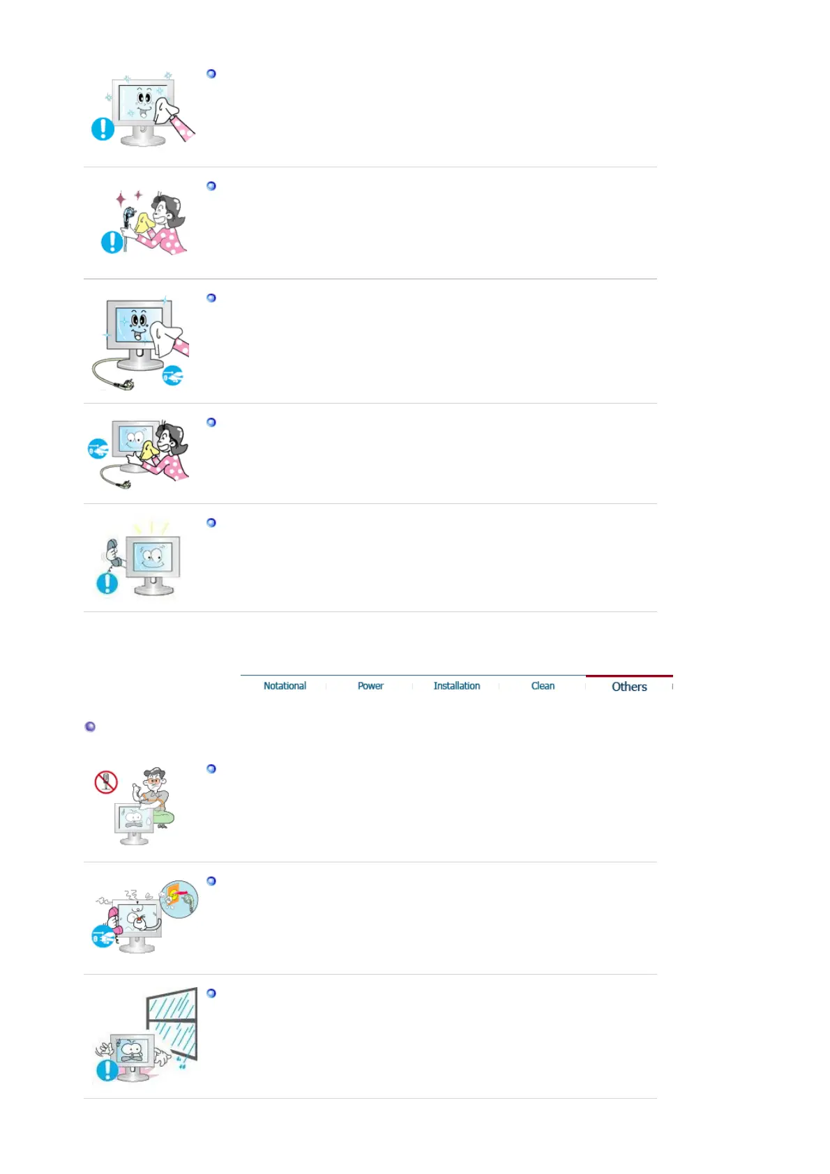 sound or smell coming from the monitor - unplug it immediately and contact an