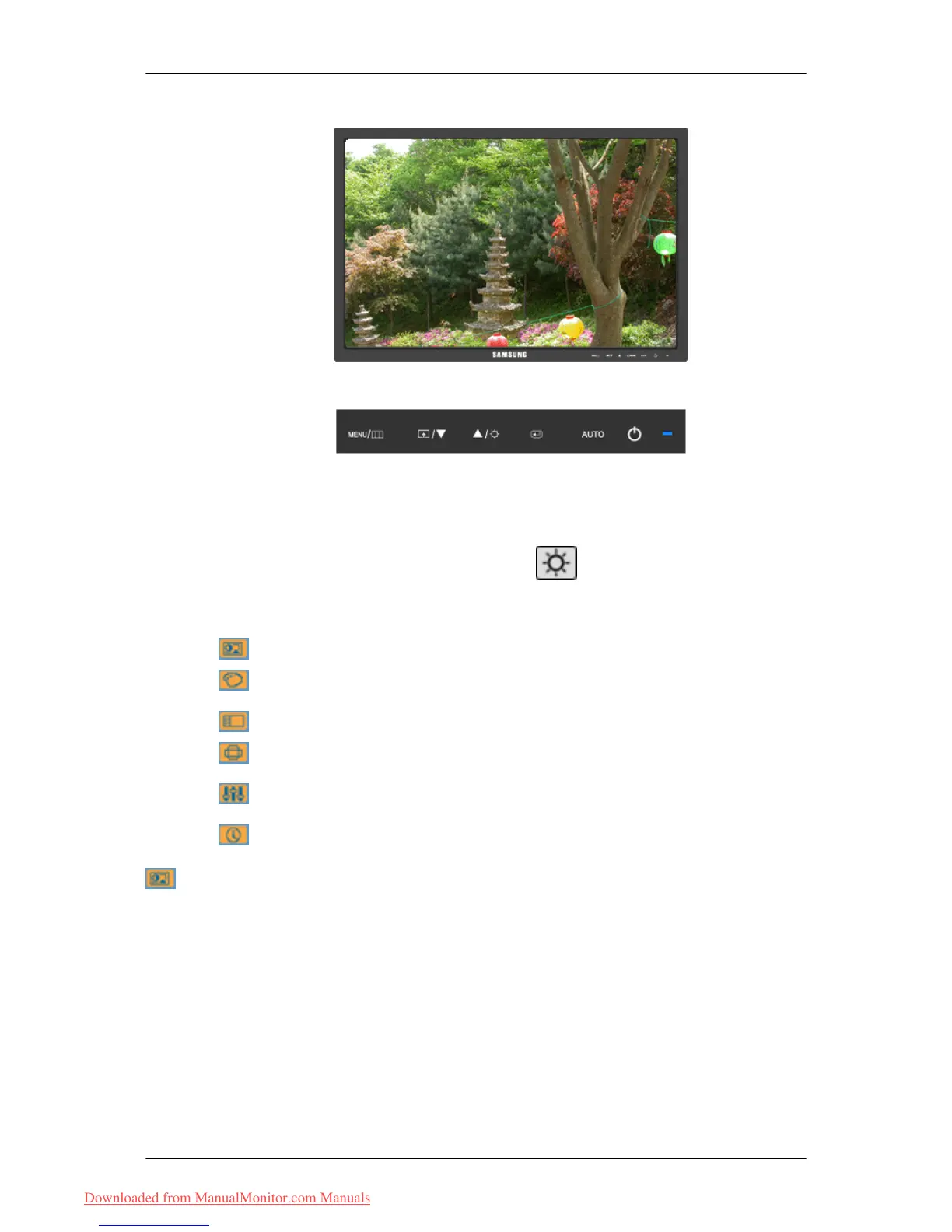 When OSD is not on the screen, push the Brightness ( ) button to adjust brightness.