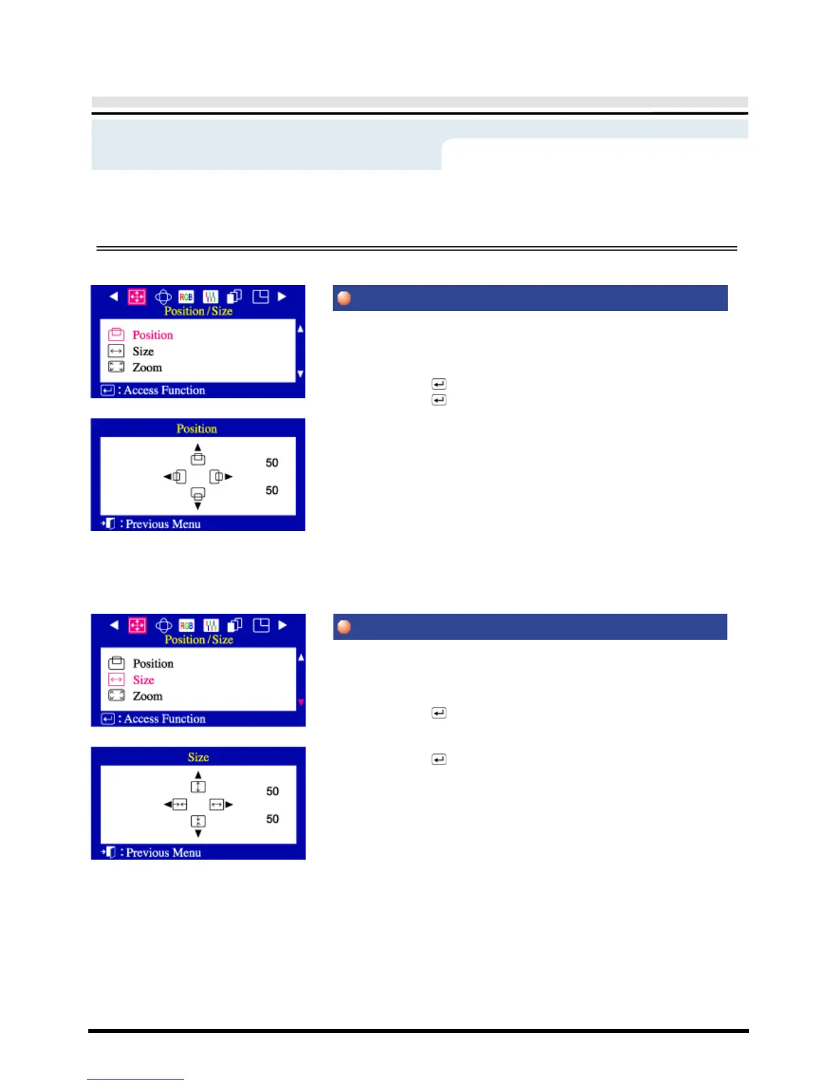 3 Push the Menu( ) button to open the Size adjustment screen.