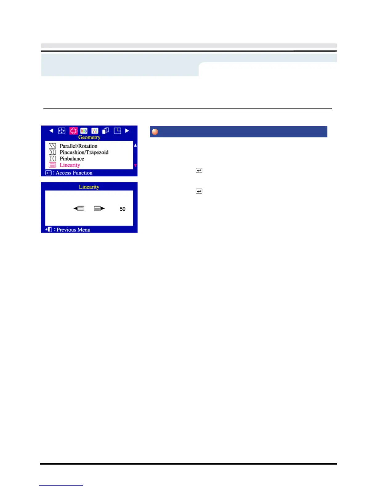 3 Push the Menu ( ) button to open the Linearity adjustment screen.