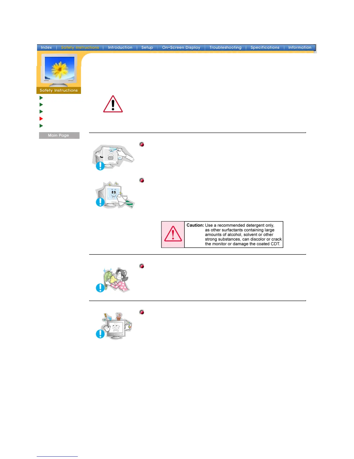 Do not spray detergent directly on the monitor.