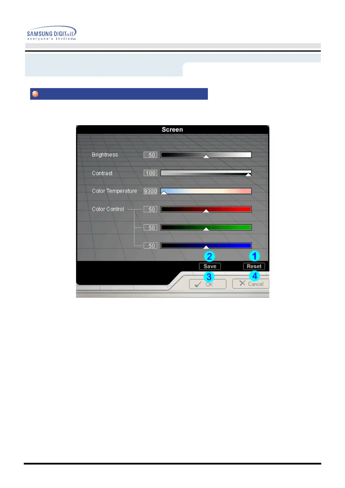This returns the monitor settings to their original state before the current adjustments are saved and exits the