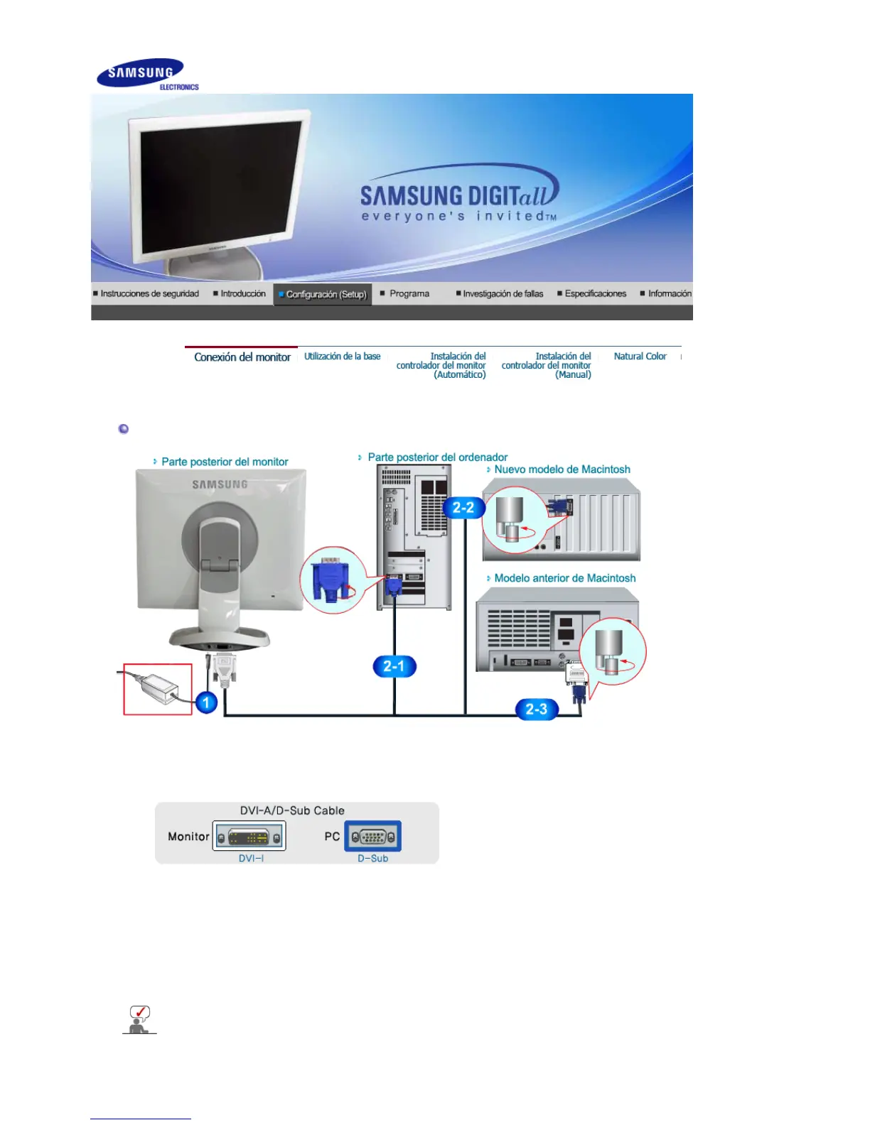 Conecte el monitor al equipo Macintosh Usando el cable de conexión DVI-A à D-Sub .