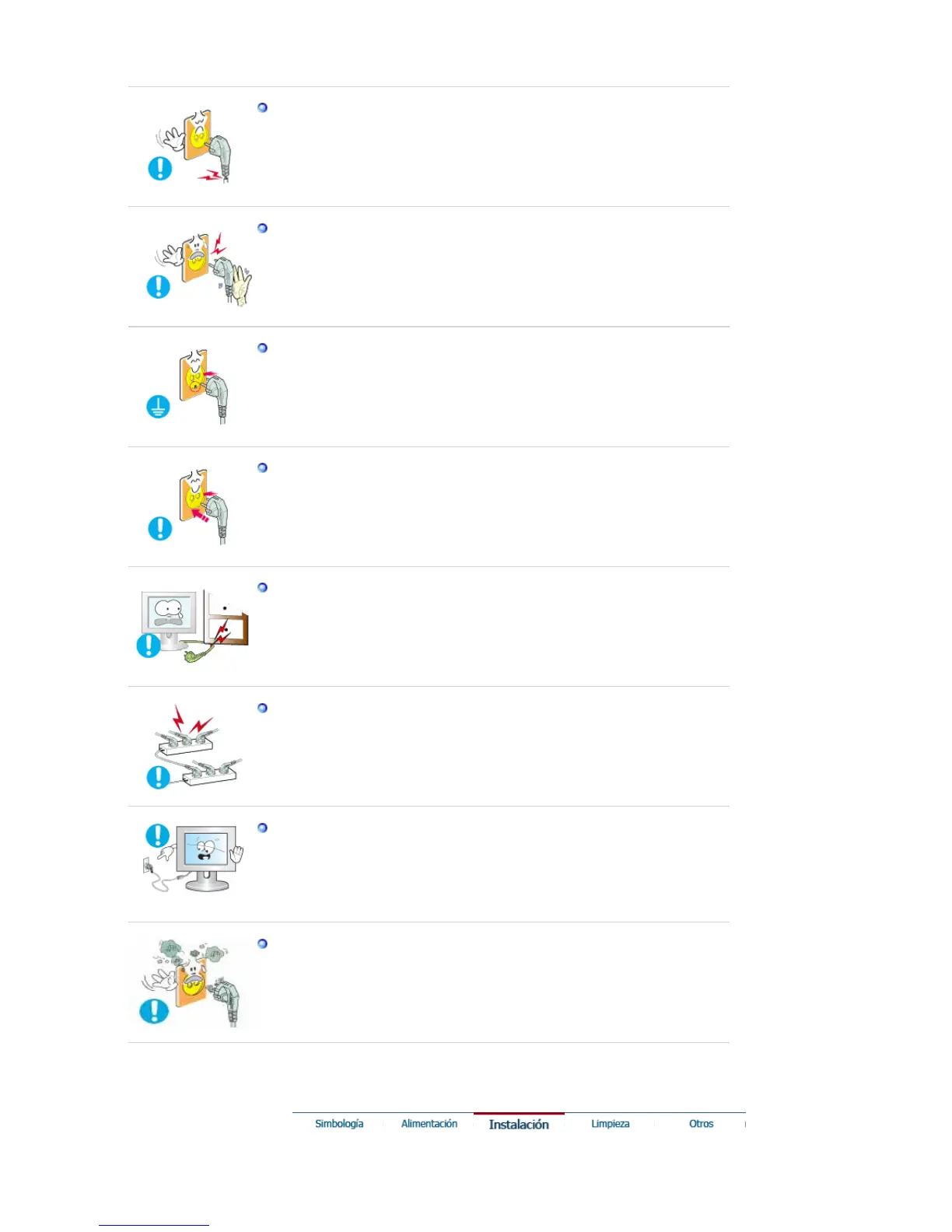 No jale del cordón ni toque el tomacorriente con las manos mojadas.