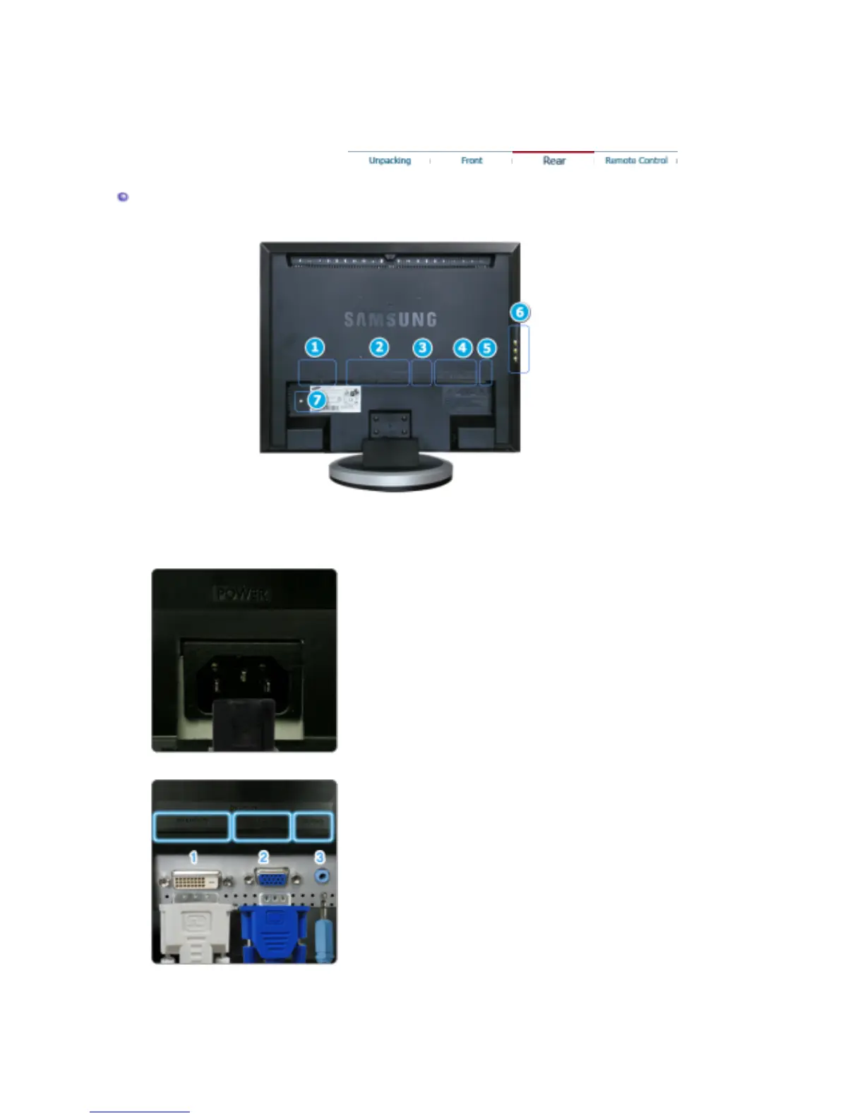 (The configuration at the back of the monitor may vary from product to product.)