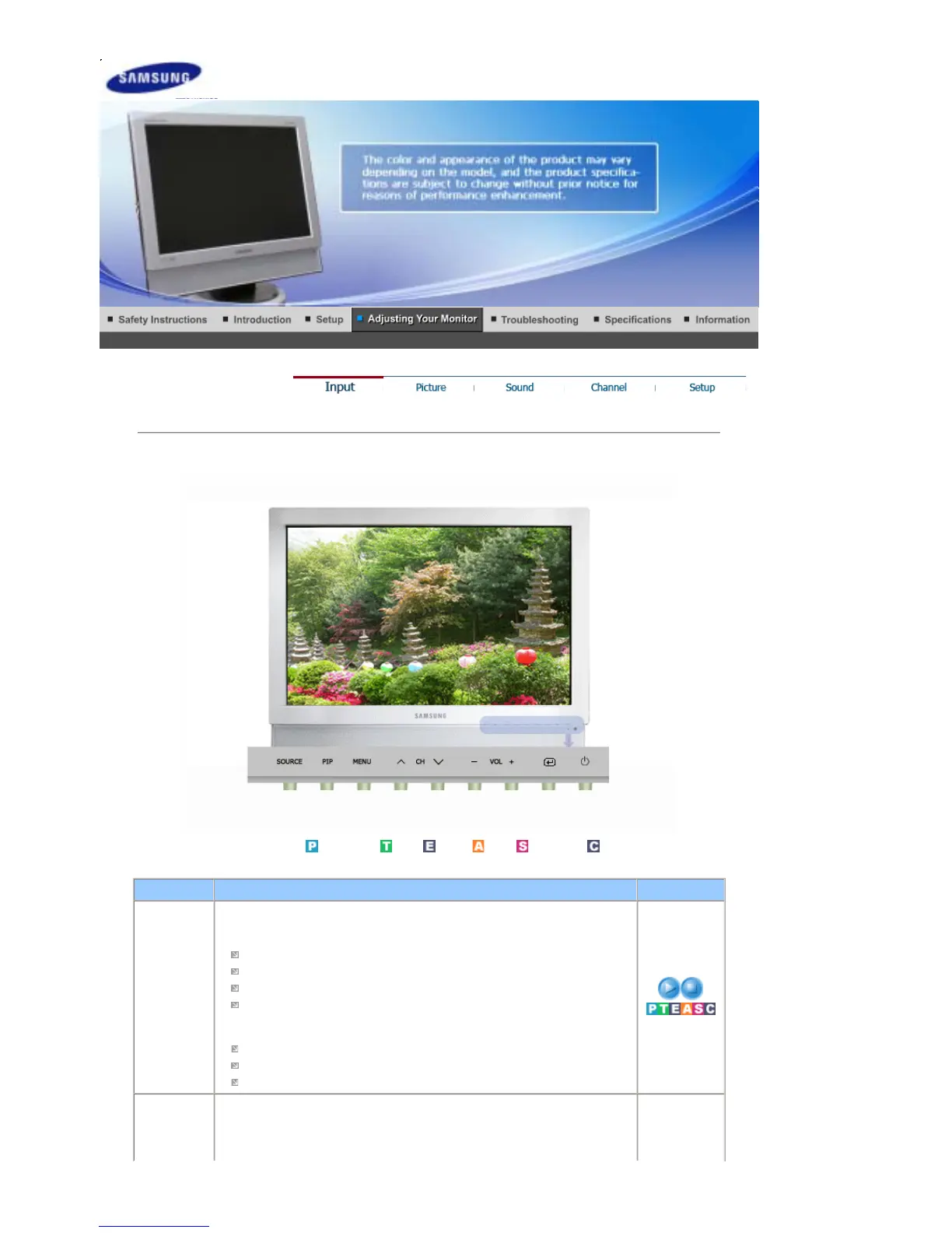 Source List Use to select PC or other external input sources connected to the Monitor.