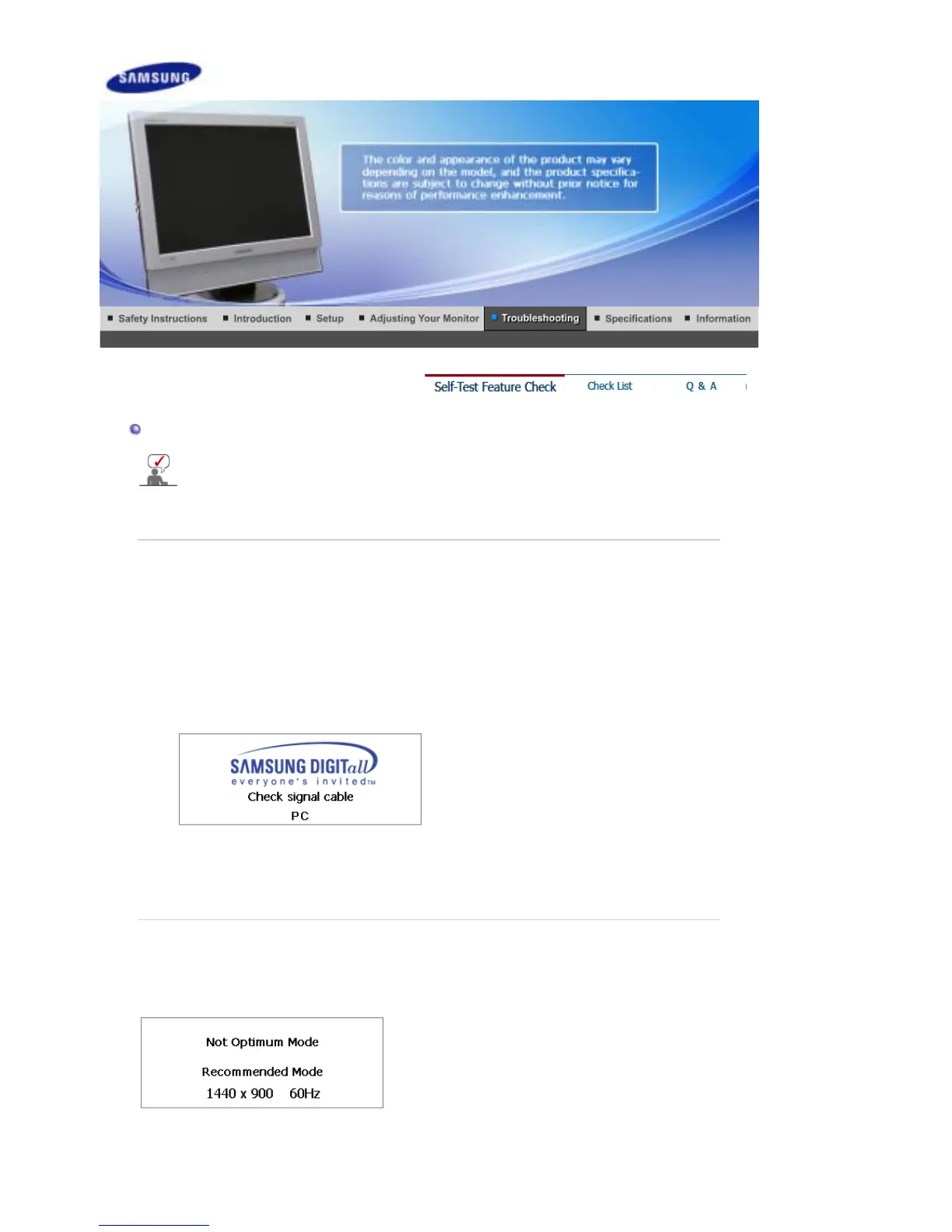 Self-Test Feature Check | Not Optimum Mode | Display Adapter Driver
