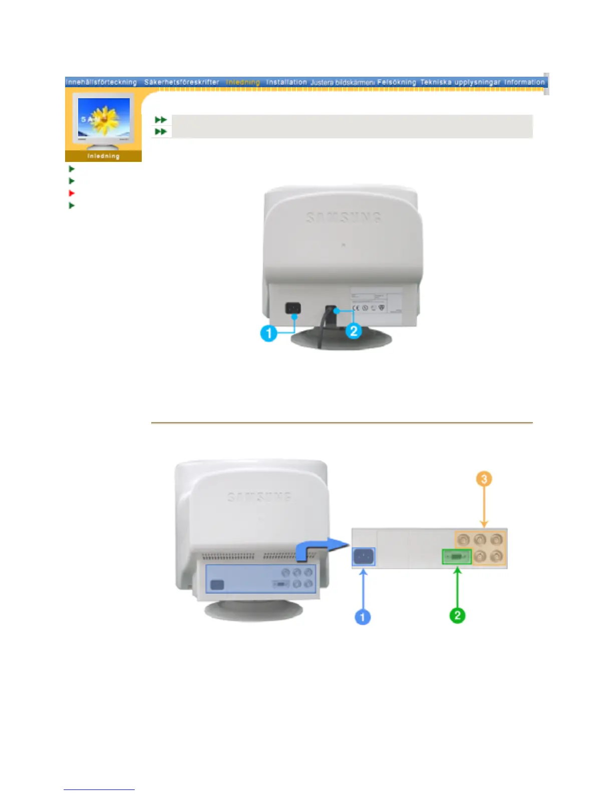 1. Elanslutning Koppla in elsladden för monitorn till eluttagetmonitorns baksida.