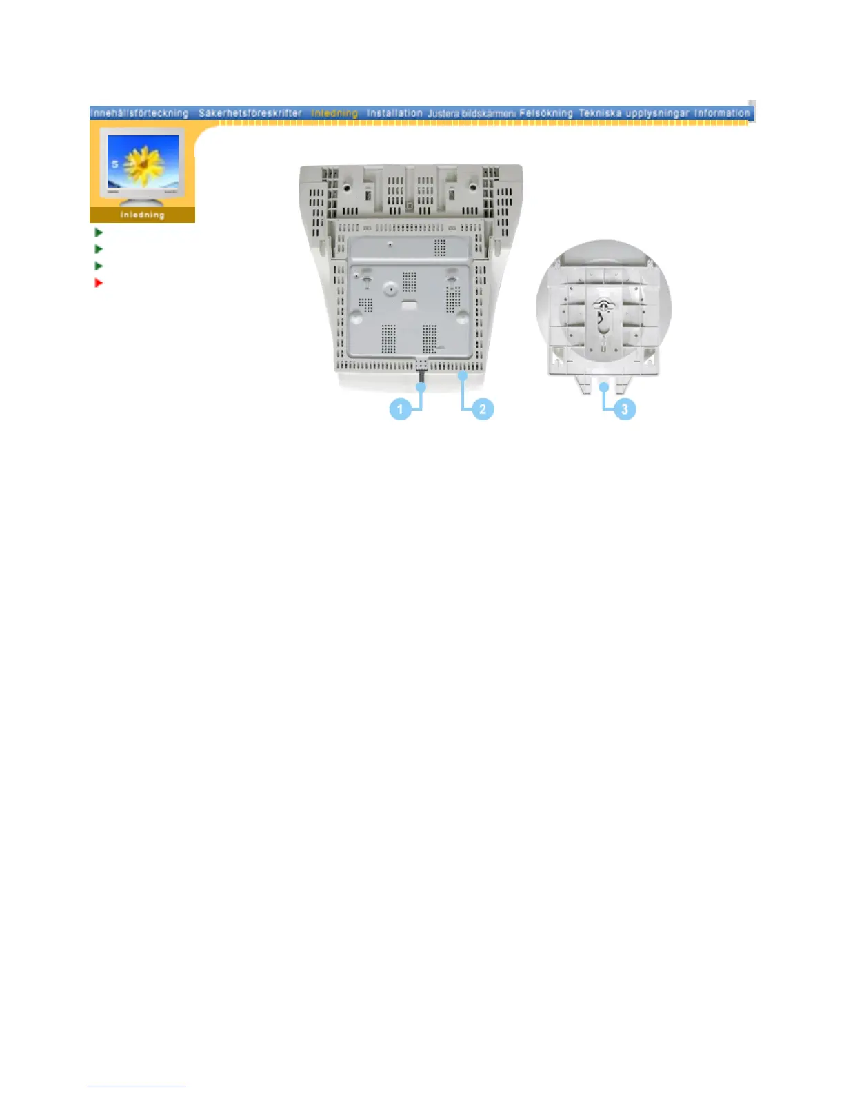 2. Elanslutning Koppla in elsladden för monitorn till eluttagetmonitorns baksida.