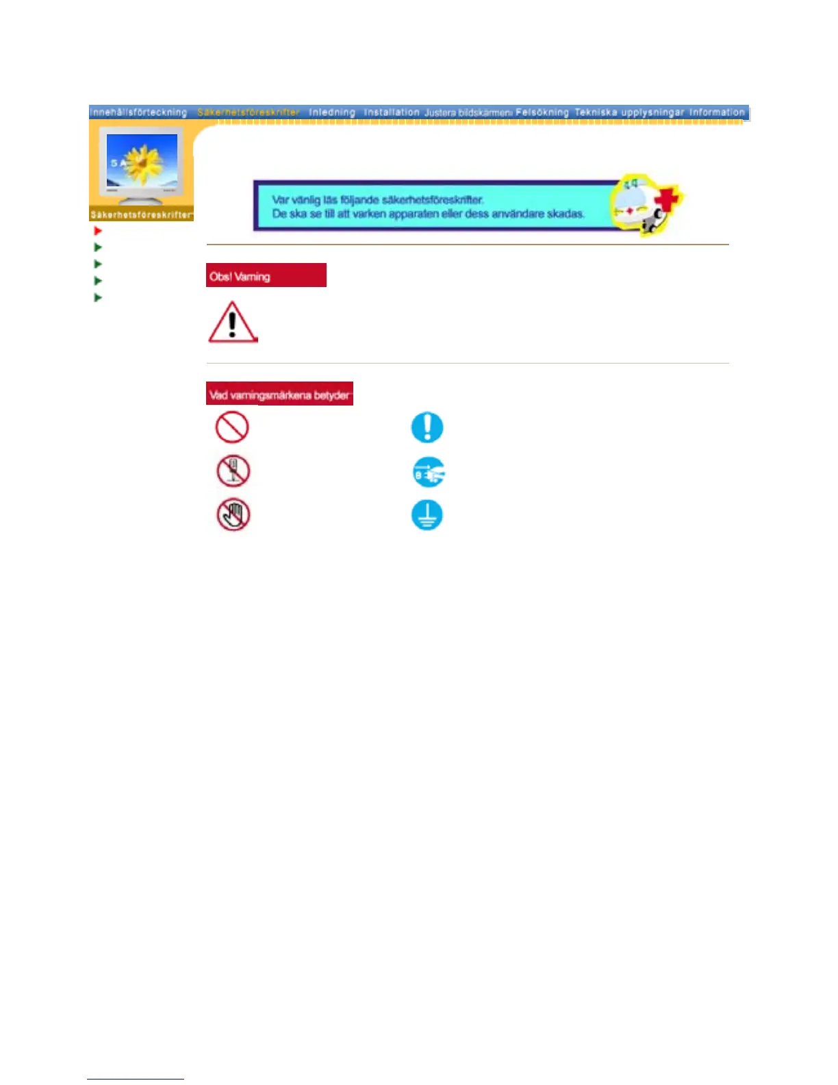 Låter man bli att följa anvisningar med den här symbolen, kan man göra sig illa eller råka ut