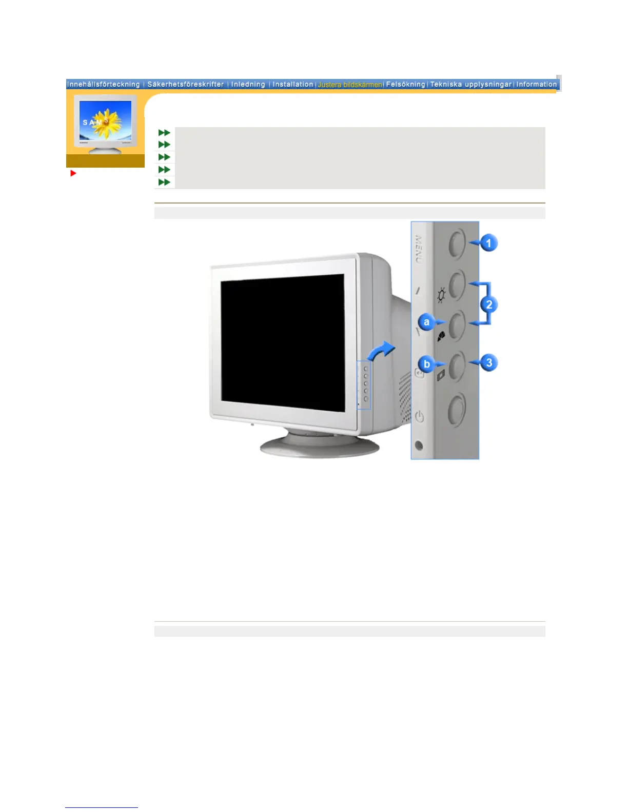 1. Används för att öppna eller stänga menyskärmen.