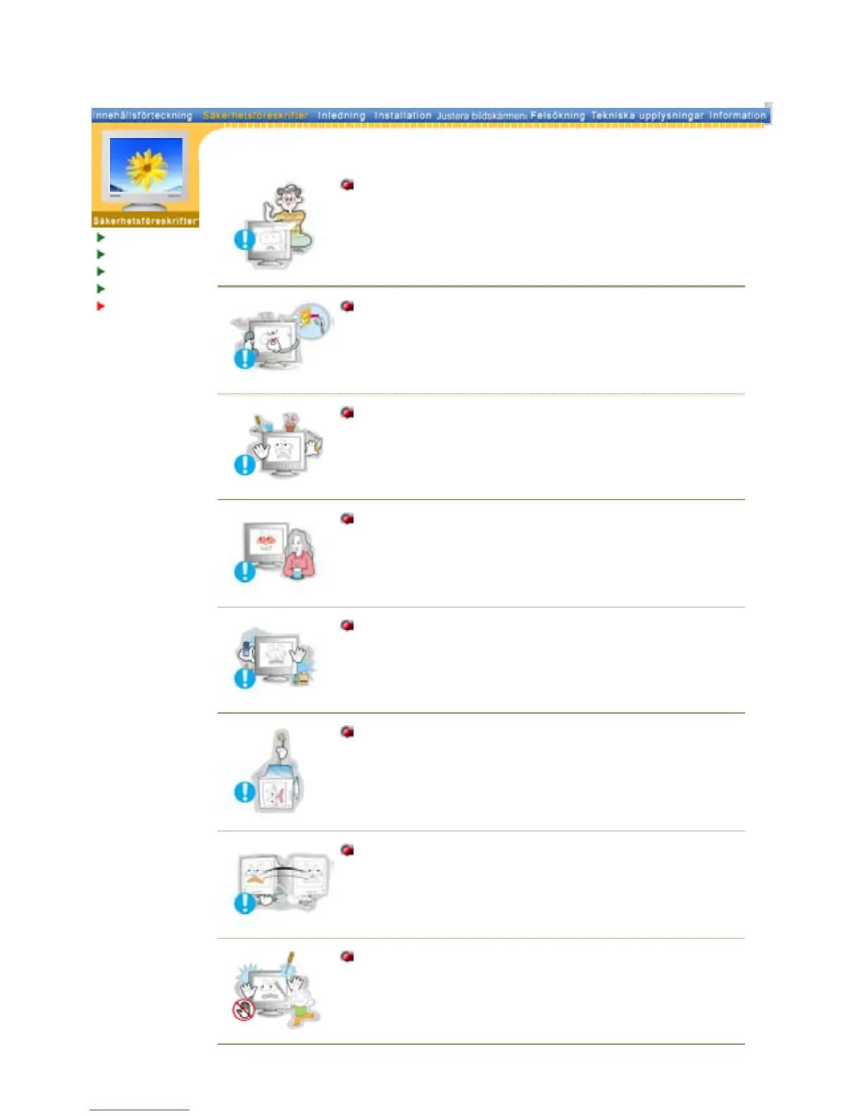 Anv änd eller förvara inte lättantändliga ämnen nära monitorn.
