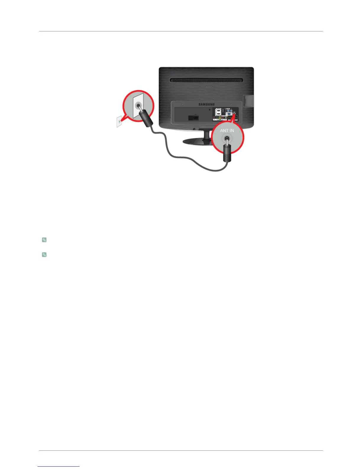 1. Connect the cable or TV antenna cable to the [ANT IN] port on the rear side of the monitor.