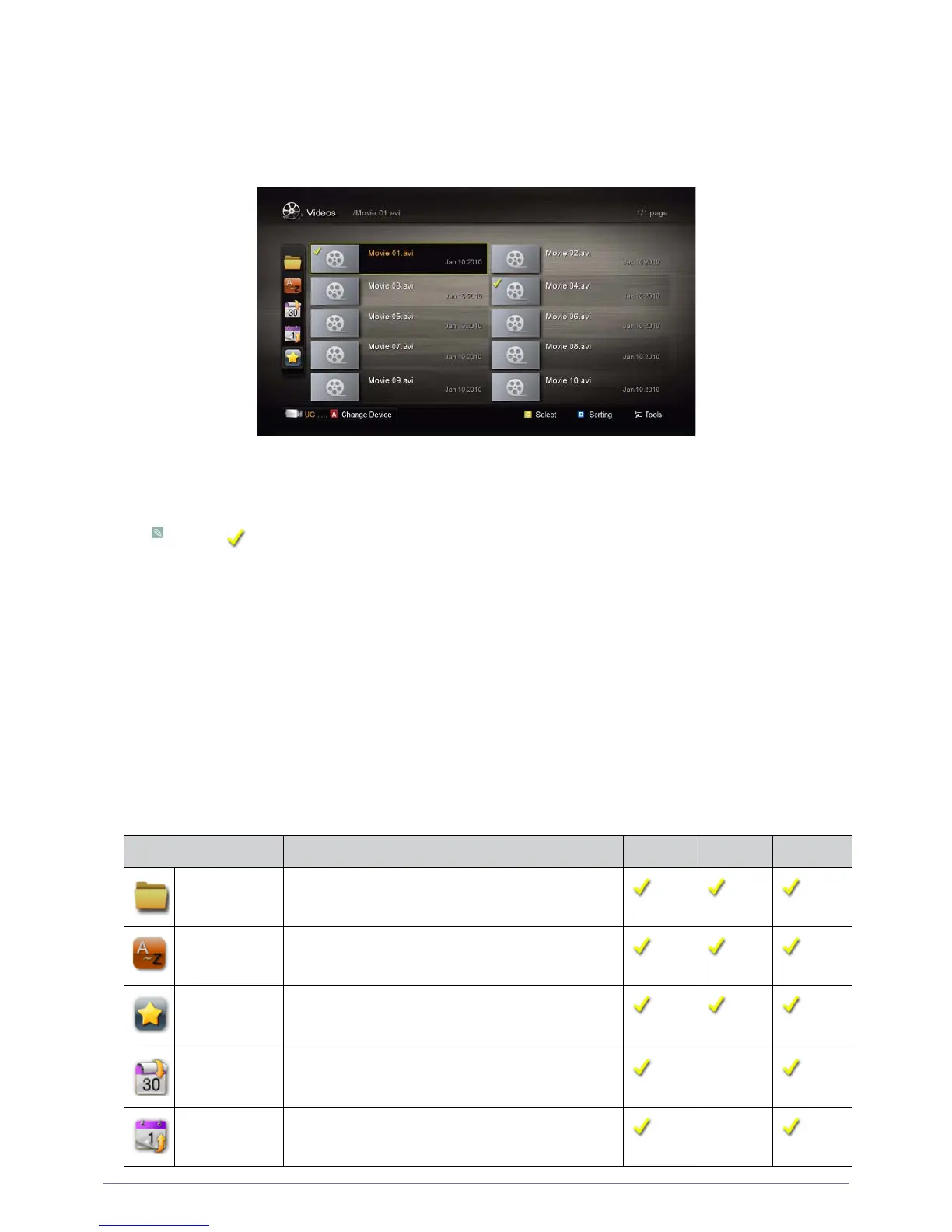 • To deselect all selected files, press the TOOLS button and select Deselect All.