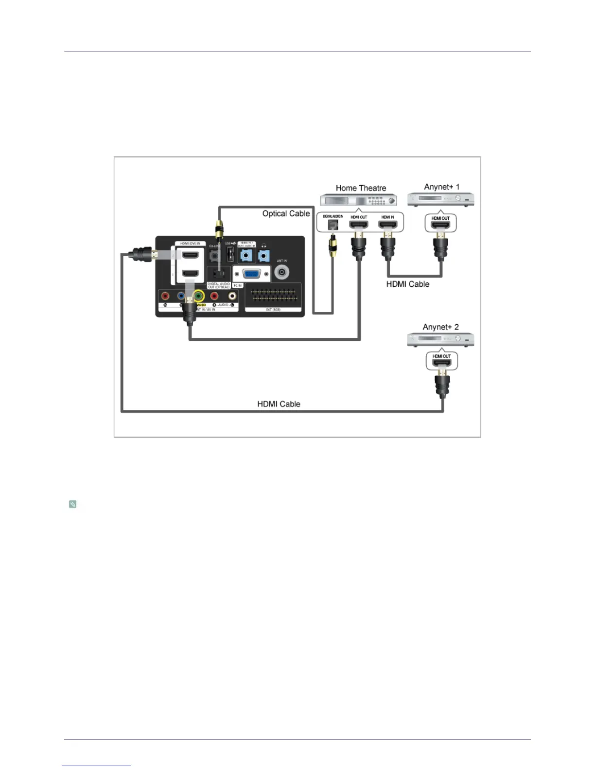 You can connect an <Anynet+> device using the HDMI cable. Some HDMI cables may not support <Anynet+>