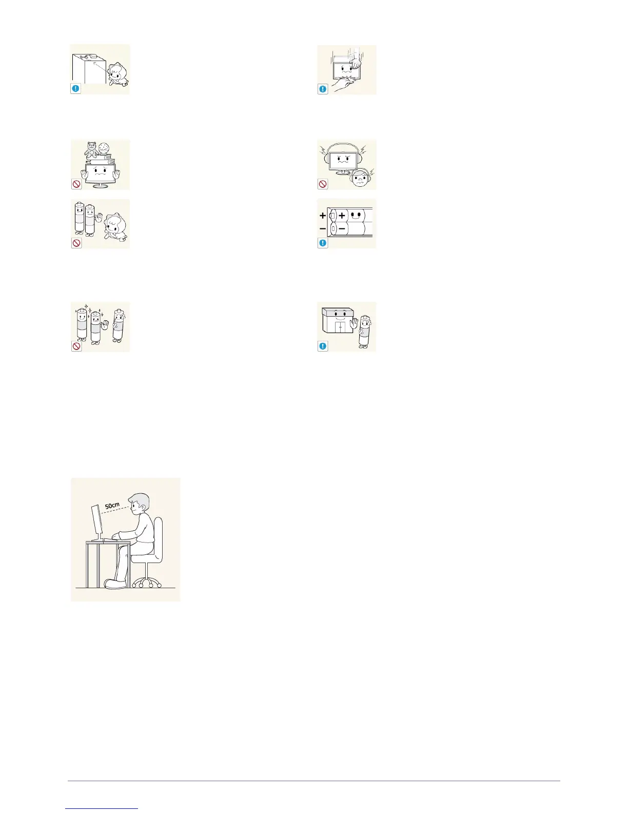 • Keep a distance of 45~50 cm (15~19 inches) from your eyes to the screen. Look down at