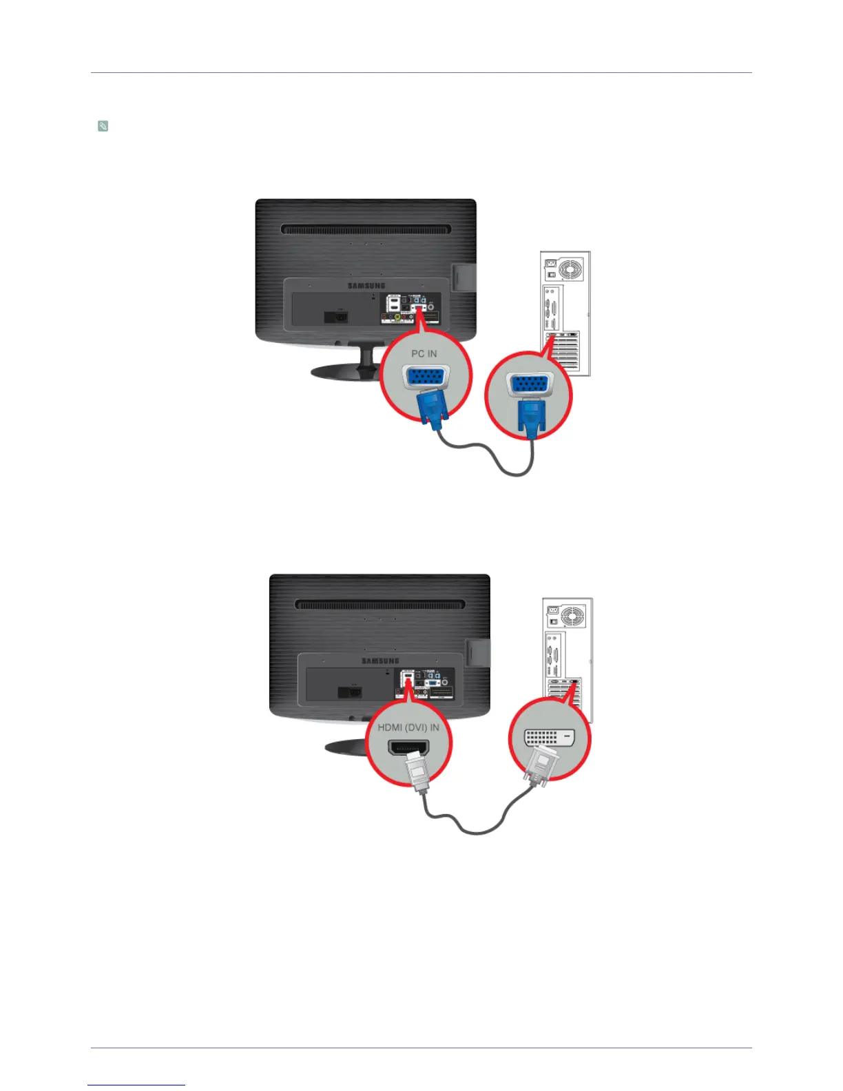 1. Connect the product to a PC depending on the video output supported by the PC.
