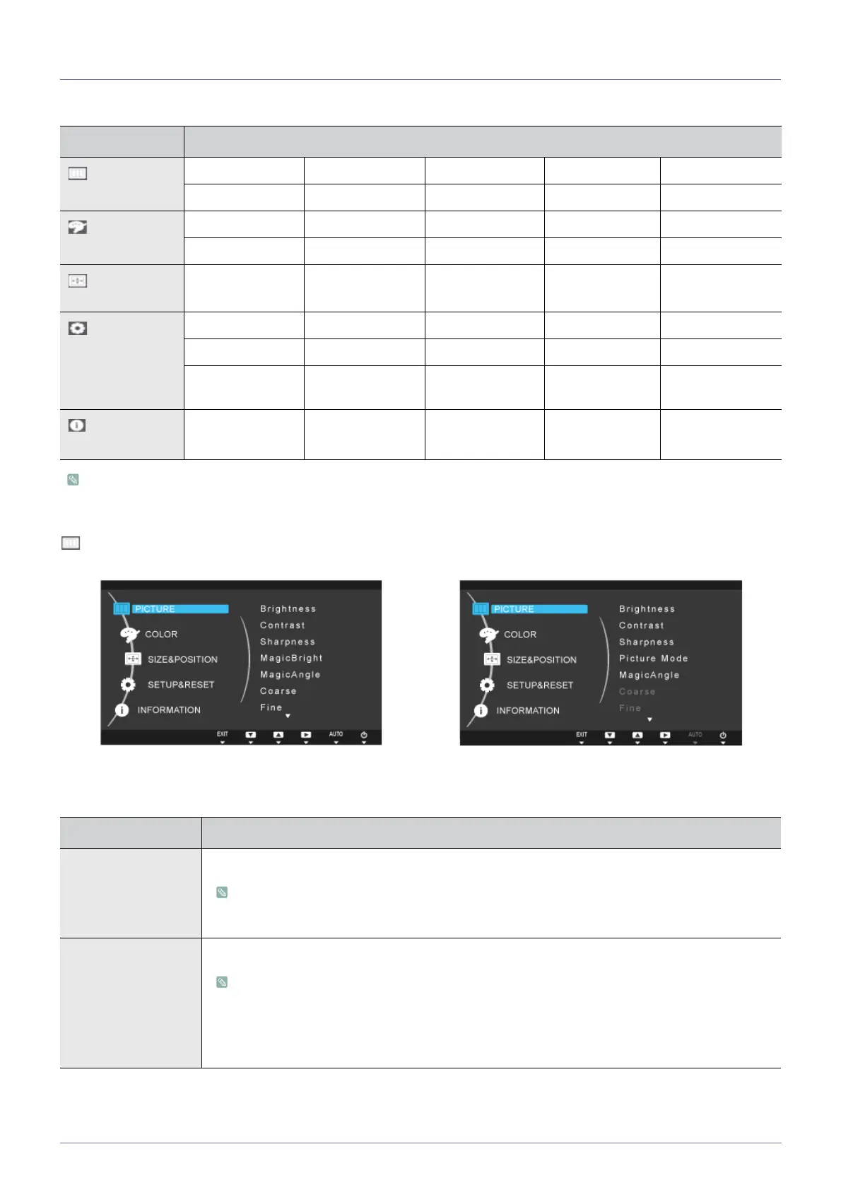 Brightness Contrast Sharpness MagicBright Picture Mode