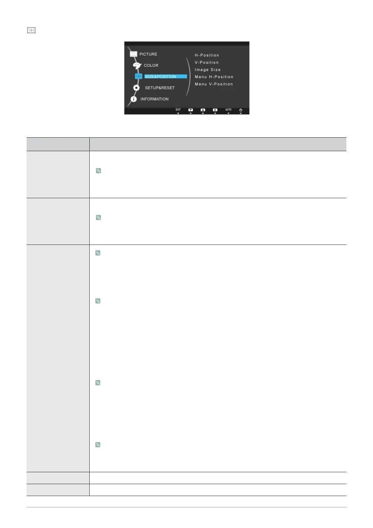 Menu H-Position You can adjust the horizontal position of the OSD.