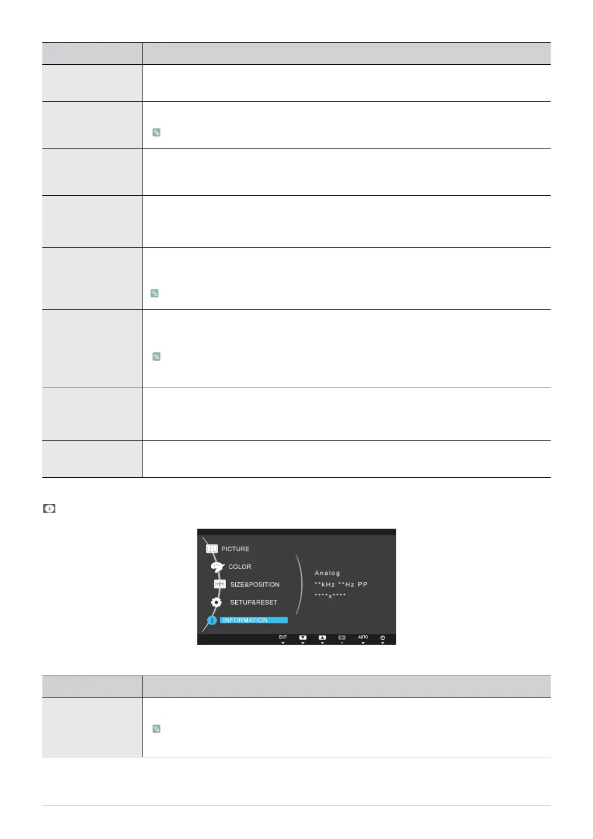INFORMATION Shows the frequency and resolution set on the PC.