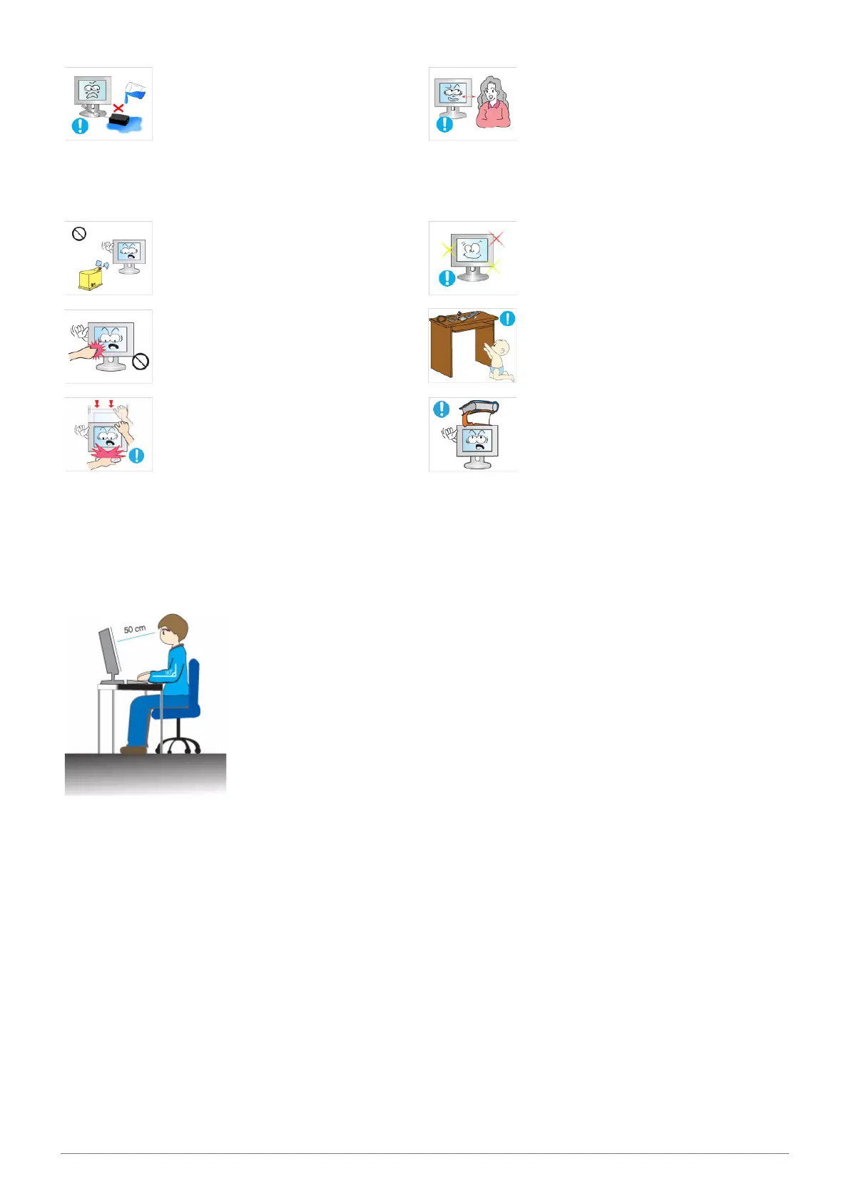 • Keep a distance of 45~50 cm from your eyes to the screen. Look down at the screen and