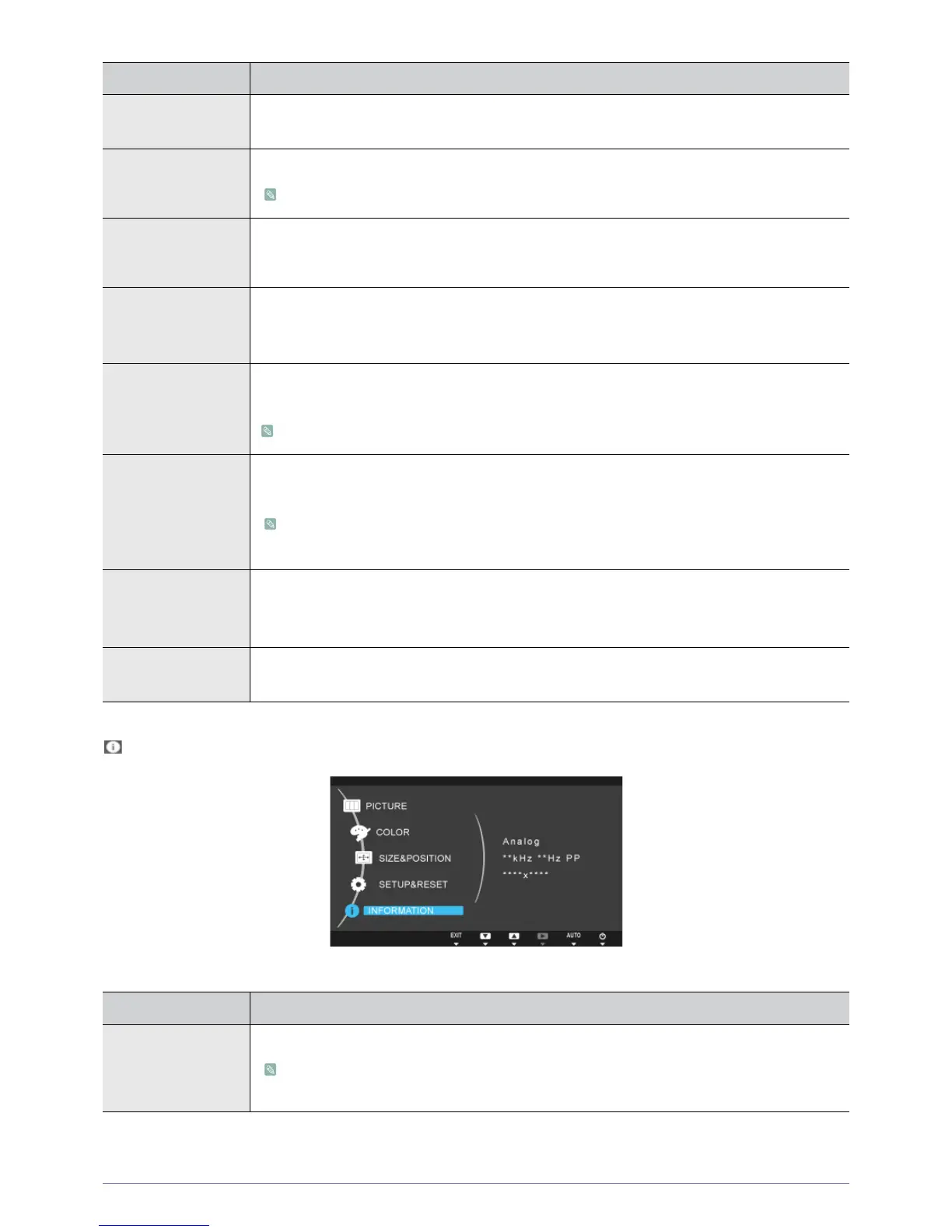 INFORMATION Shows the frequency and resolution set on the PC.