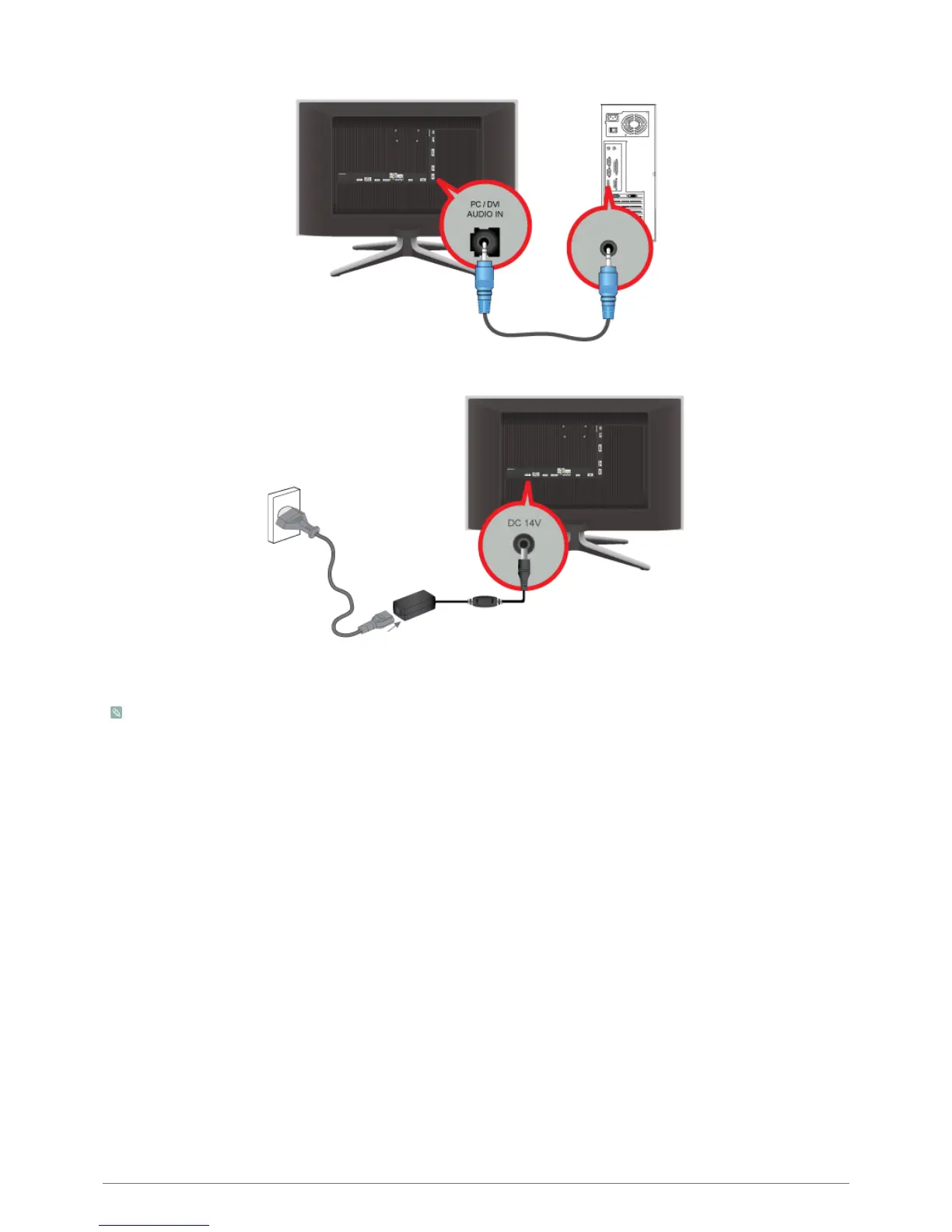 2. Connect the [PC / DVI AUDIO IN] port on the rear side of the product to the sound card of the PC.