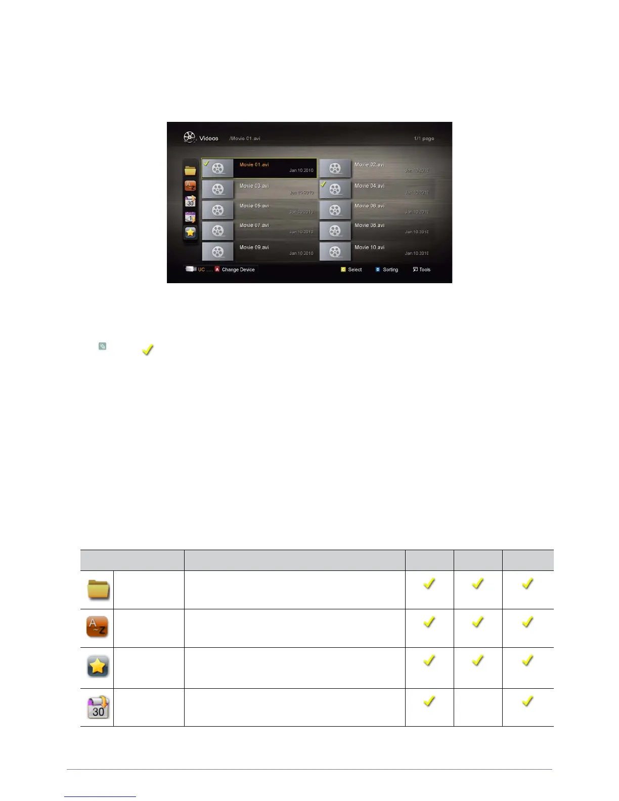 Preference It sorts and displays the file by preference. You can