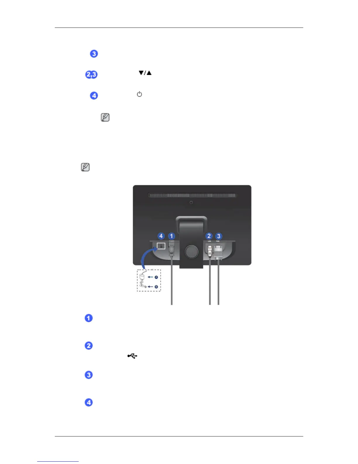Connect the D-sub cable to the 15-pin, RGB IN port on the back of your mon-