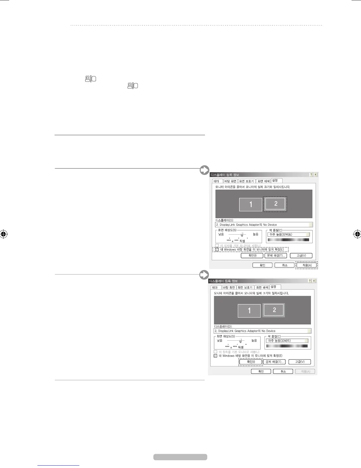 N USB 모니터(USB 케이블 연결) 및 일반 모니터(D-Sub 케이블 연결)의 다중 모니터 설정 방법은 동일합니다.