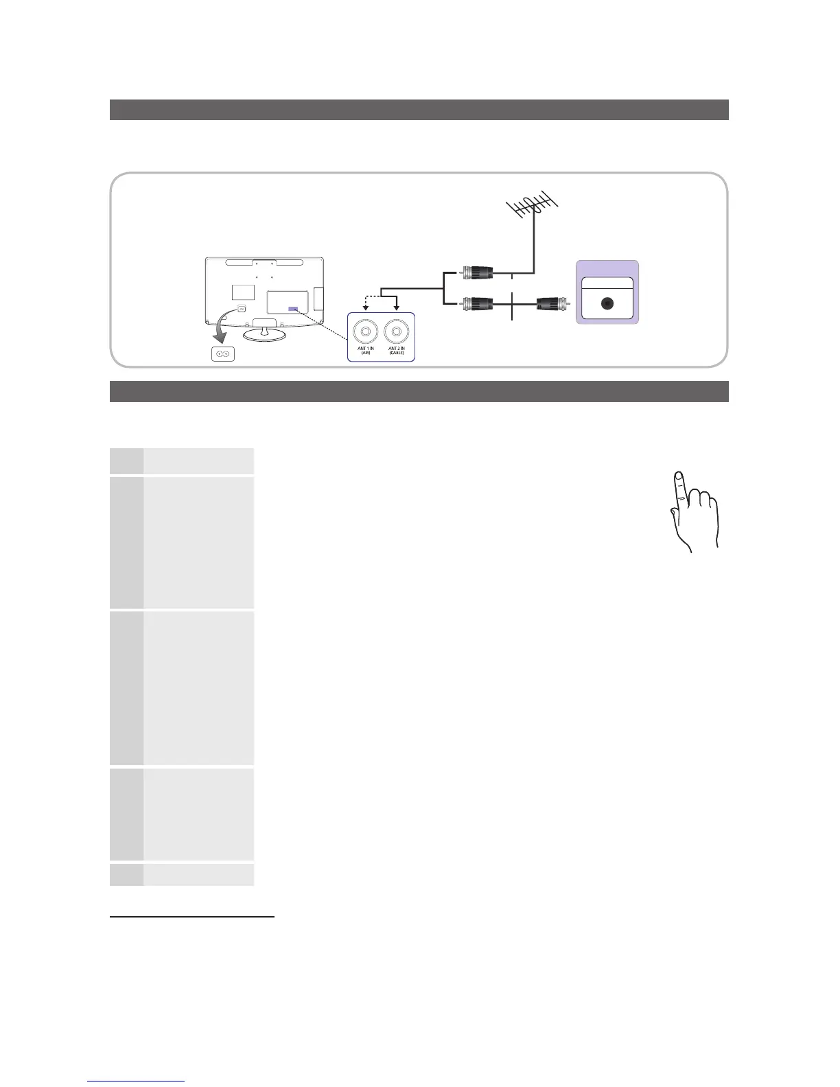 y If the antenna is connected to ANT 1 IN (AIR), select Air and if it is connected to ANT 2