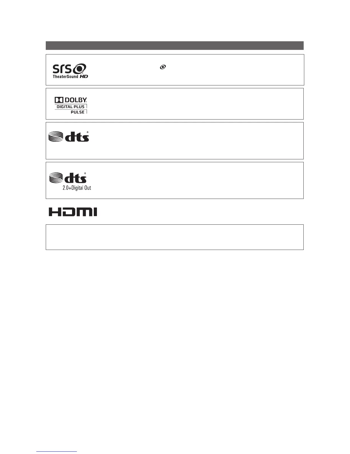 TheaterSound HD, SRS and the symbol are trademarks of SRS Labs, Inc.