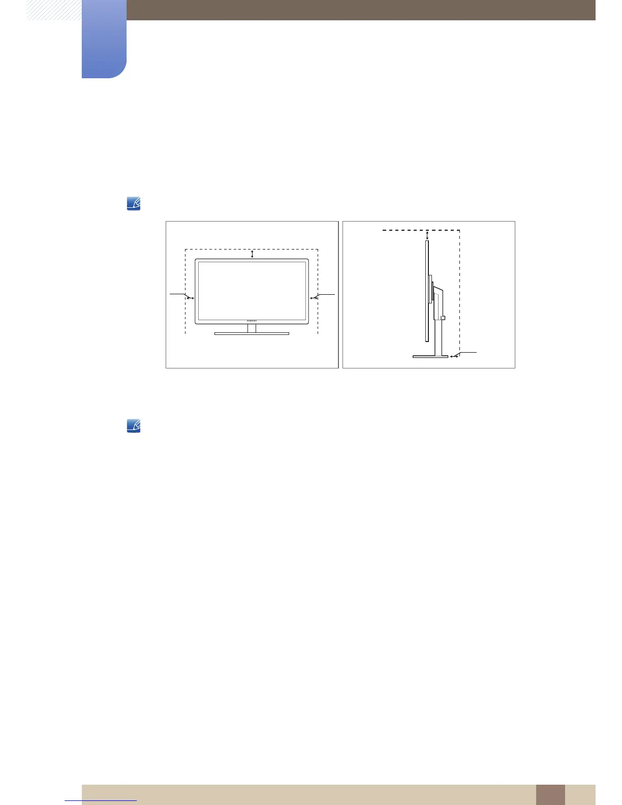 and damage the product. Be sure to allow the amount of space as shown below or greater when
