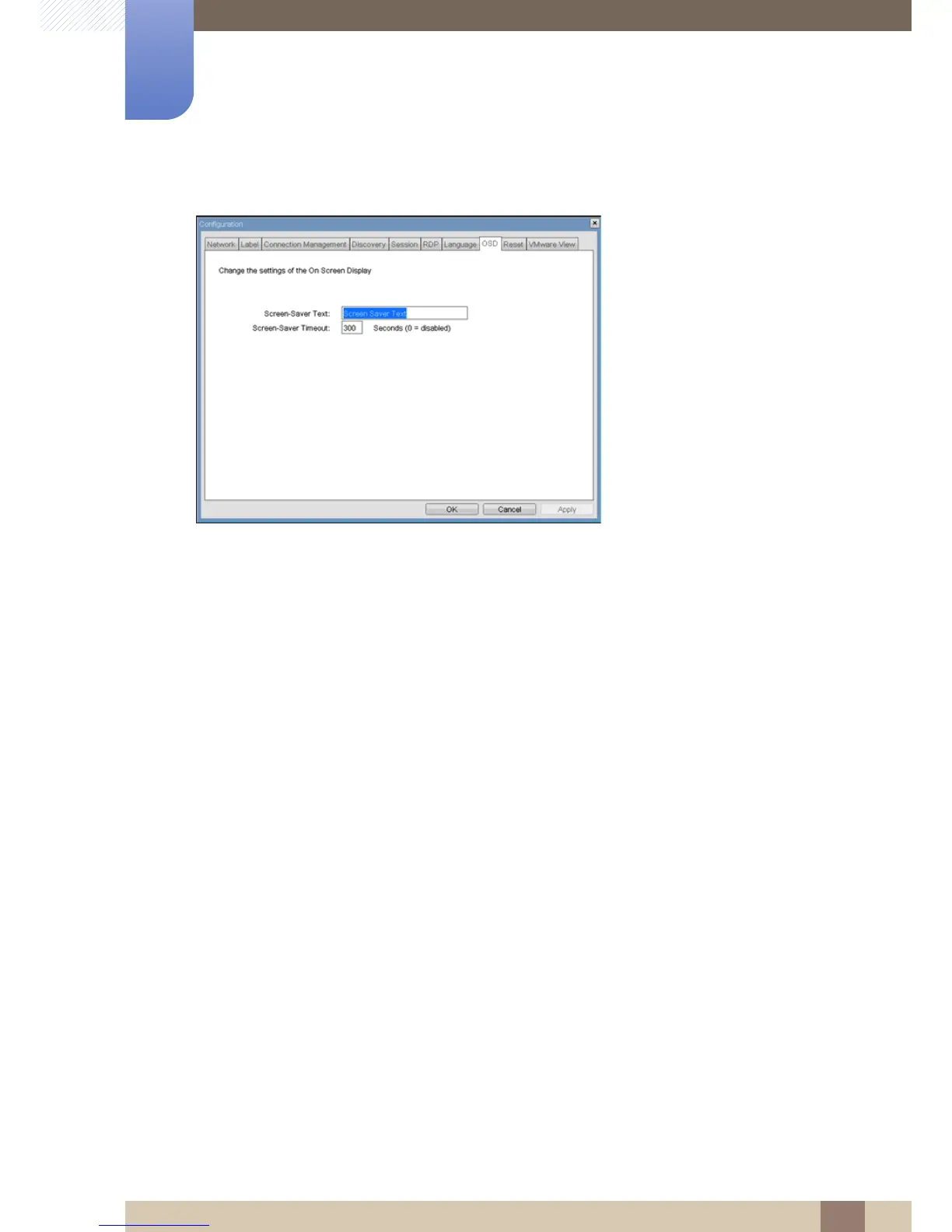 The <Screen-Saver Timeout> field allows the administrator to configure the screen-saver timeout. The