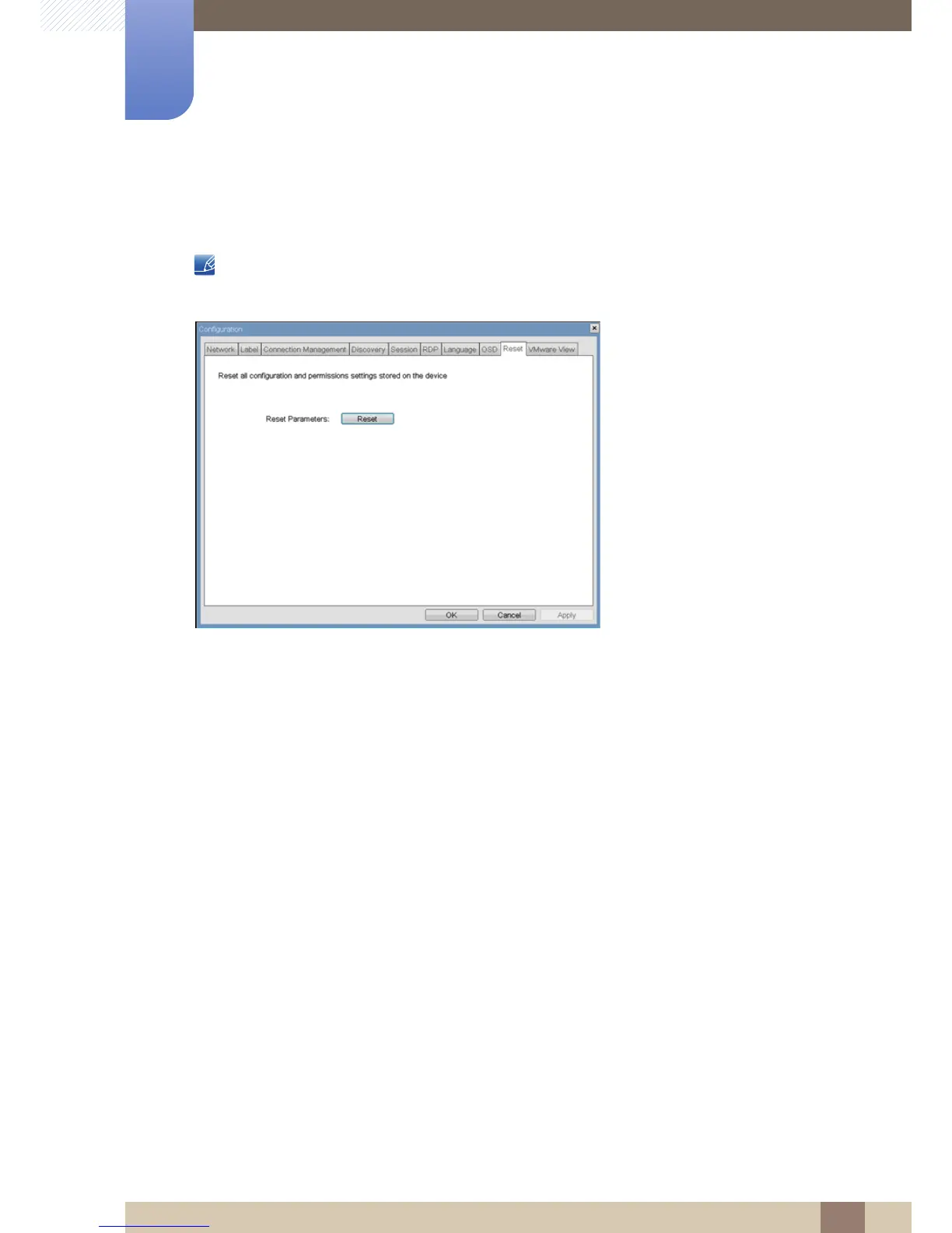 The <Reset> tab allows the administrator to reset all the configurable parameters stored in flash.