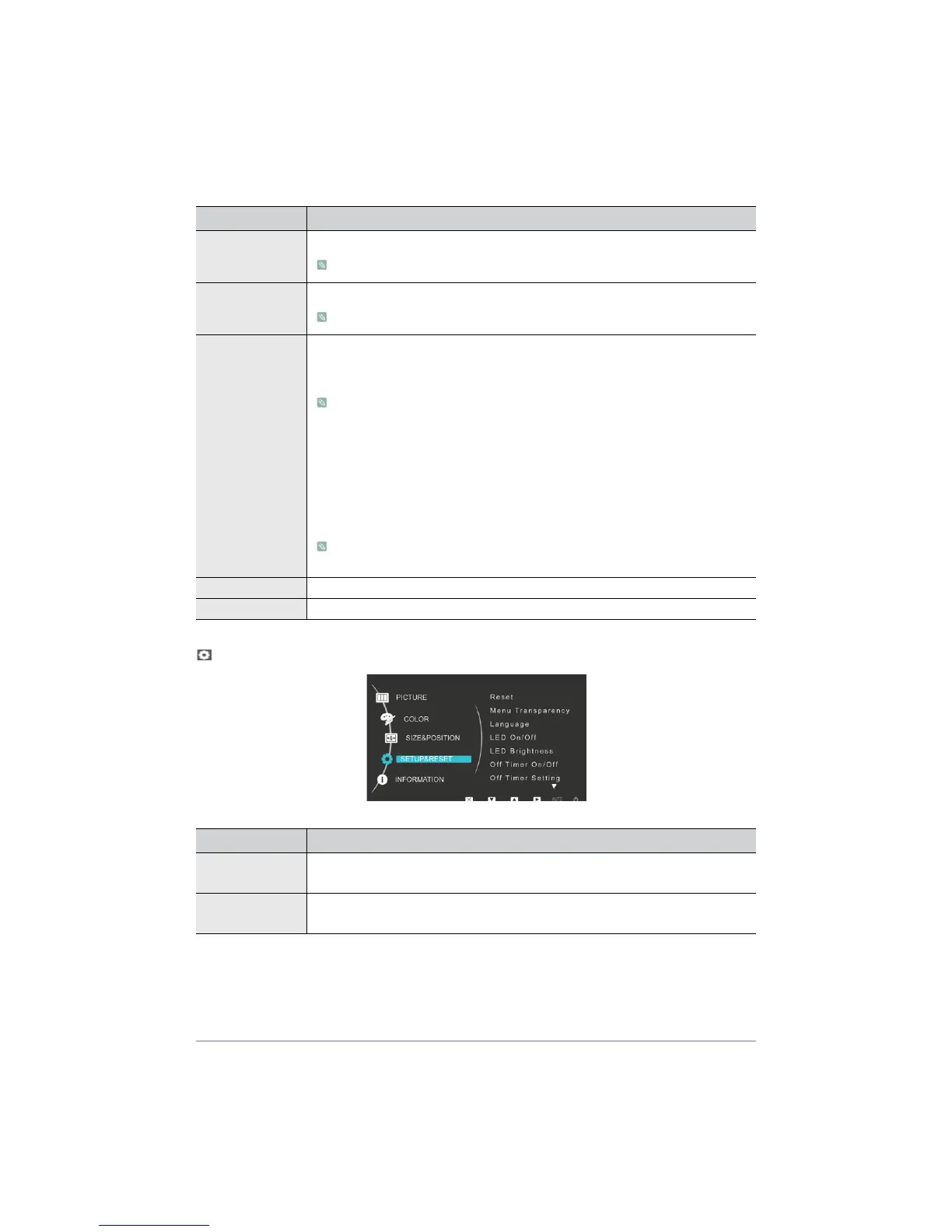 Reset Use this function to restore the visual quality and color settings to the factory defaults.
