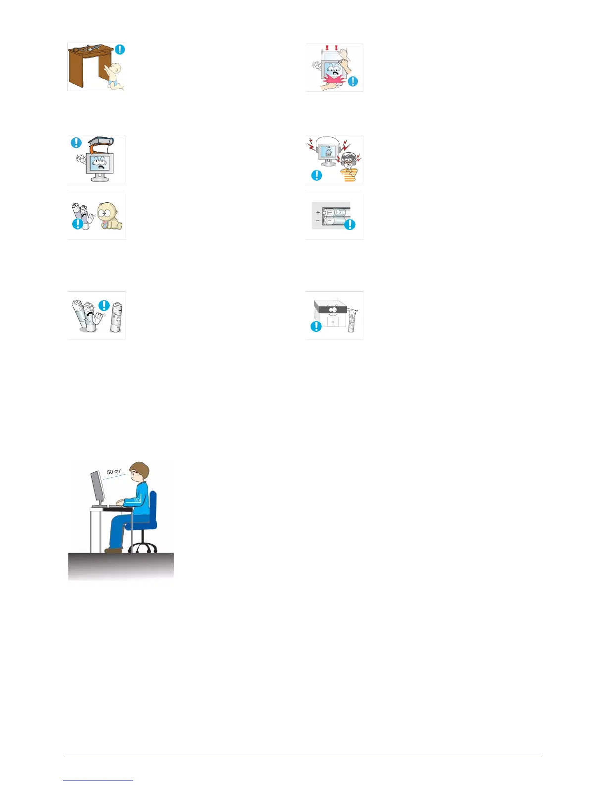 Keep a distance of 45~50 cm (15~19 inches) from your eyes to the screen. Look down at