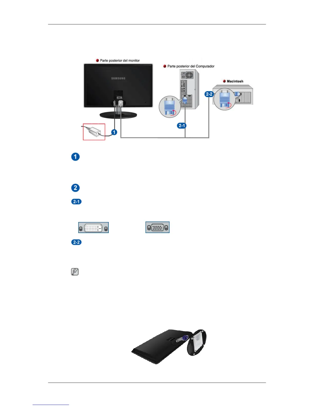 • Conecte el monitor y el ordenador Macintosh mediante el cable de conexión 'DVI-A a D-