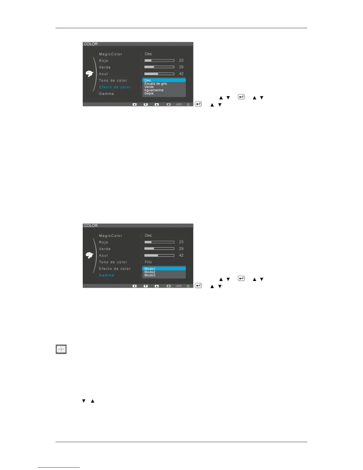 • Des. - Aplica un color acromático a la pantalla para ajustar los efectos de la pantalla.