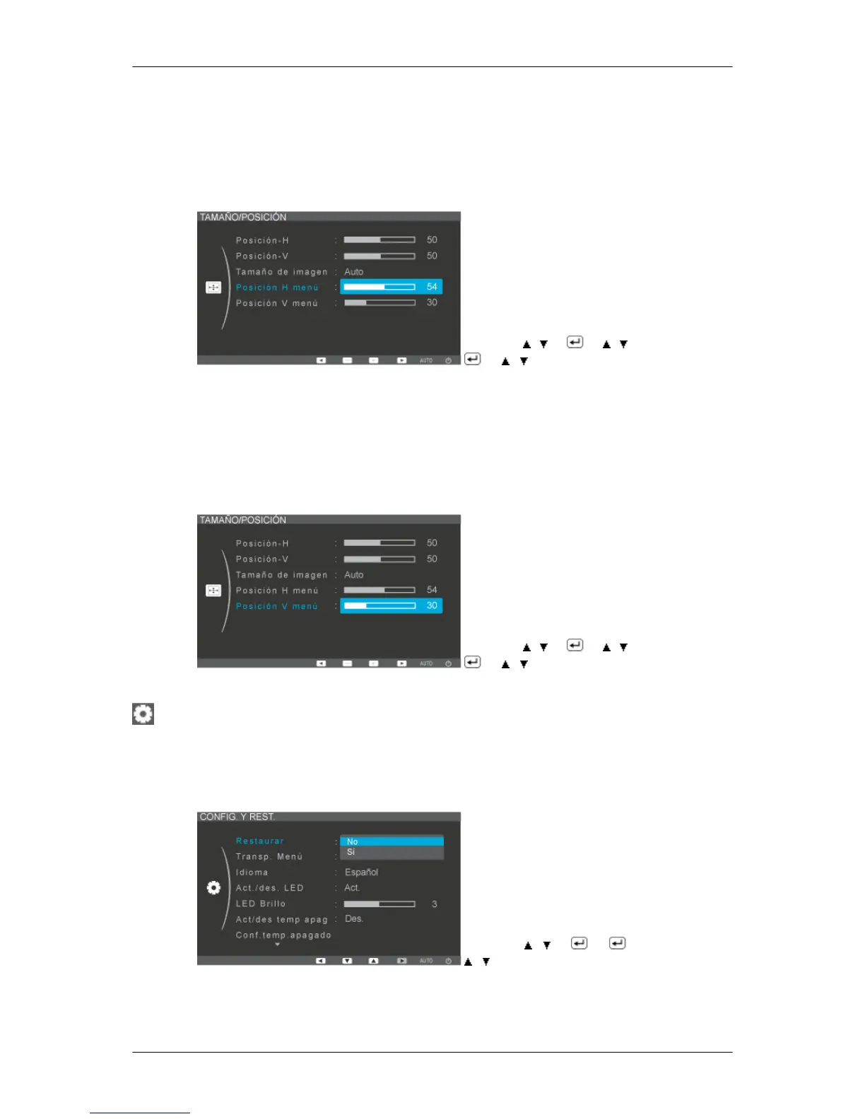 Cuanto mayor sea el número, más se desplazará el menú OSD a la derecha. Cuanto menor