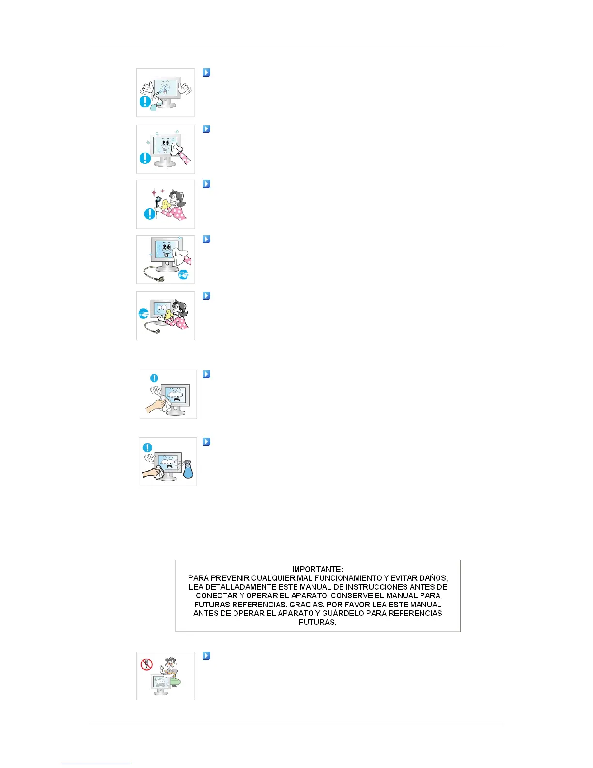 Cuando limpie el producto, no rocíe agua directamente sobre