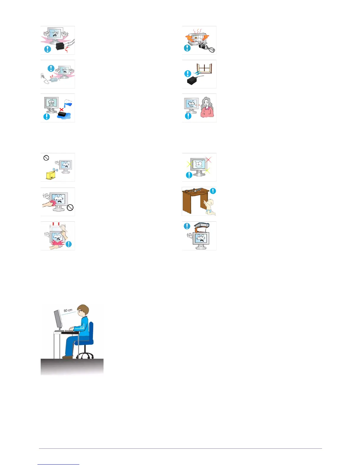 • Keep a distance of 45~50 cm from your eyes to the screen. Look down at the screen and