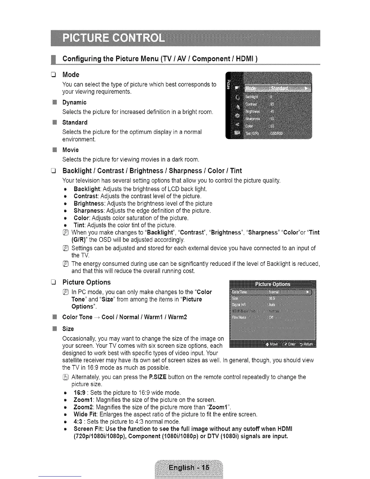 Configuringthe PictureMenu (TV/AV ! Component! HDtVll)