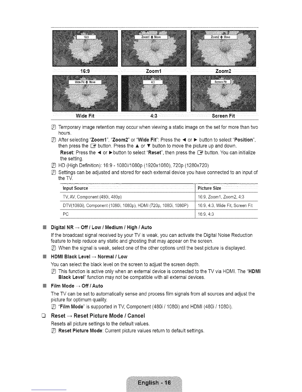 [_ Reset Picture Mode: Current picture values returnto default settings.